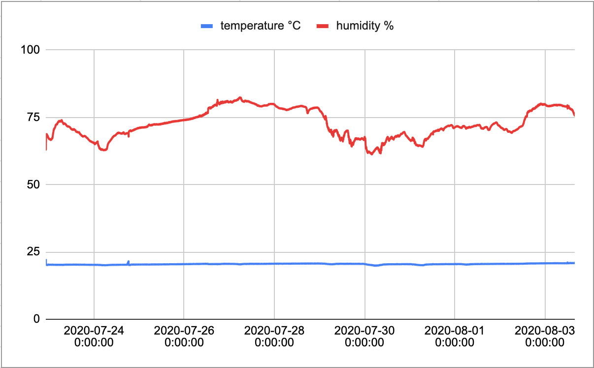 Logan and Anne had an arduino environmental sensor board with an arduino MKR1000 that we could use. There was no wifi in the basement, so we logged the measurements to an SD card.